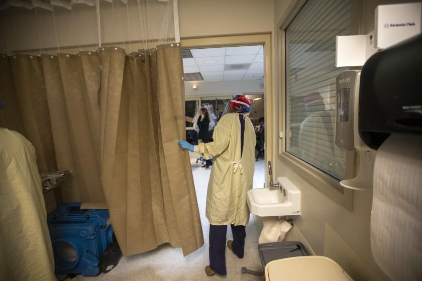 Dr. Anita Sircar, seen in the emergency room of a Torrance hospital, wrote an op-ed article in the L.A. Times urging folks to get vaccinated in opposition to COVID-19. (Los Angeles Times)