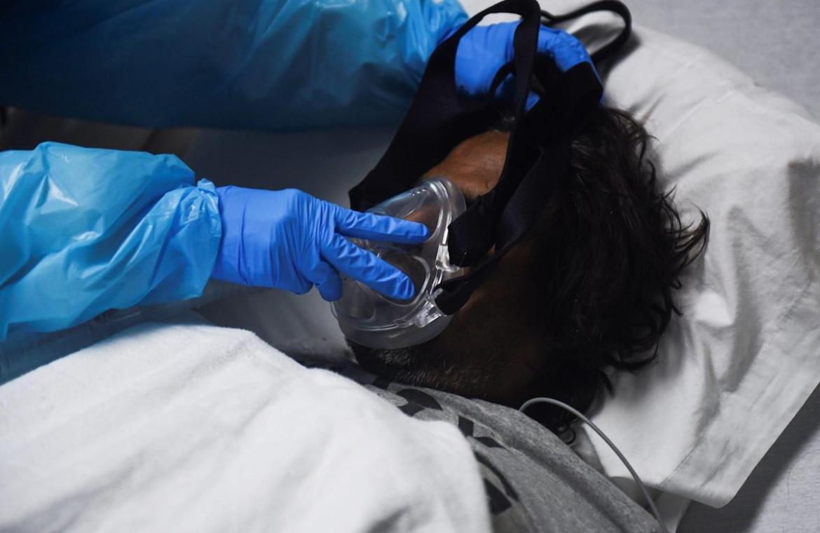 A healthcare employee locations a BiPAP machine on a COVID-19 affected person at United Memorial Medical Center in Houston, Texas, December 28, 2020. Callaghan O’Hare/Reuters
