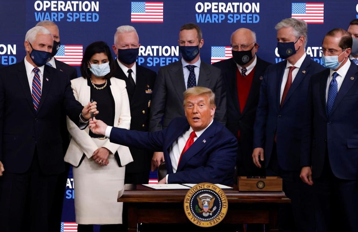 President Donald Trump indicators an government order on vaccine distribution at an Operation Warp Speed occasion on December 8, 2020.Tom Brenner/Reuters